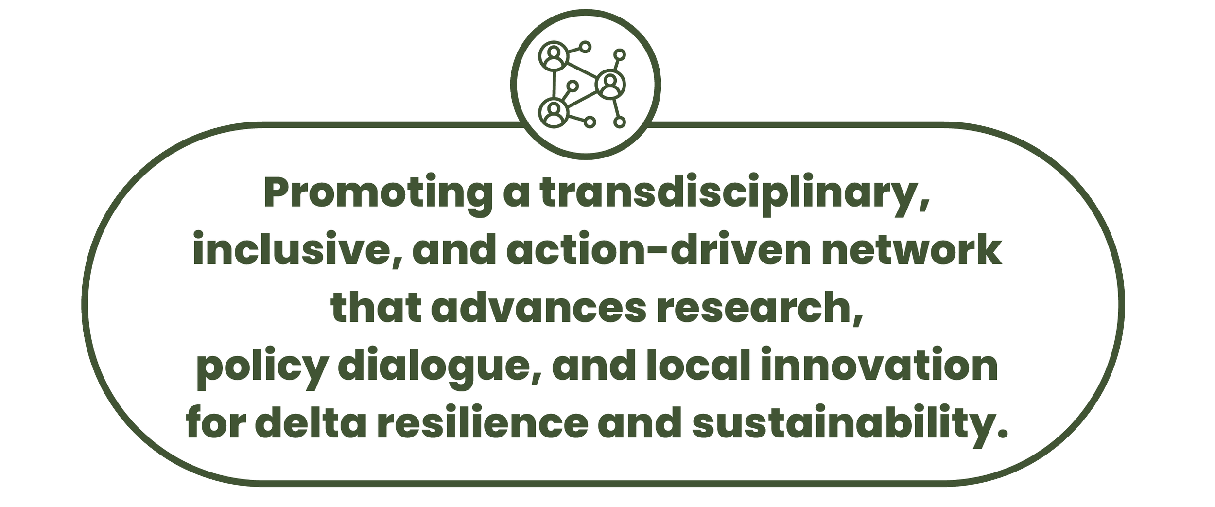The Living Deltas Network will be a global leader in inclusive, action-oriented approaches that will drive transdisciplinary research, cutting-edge policy, and locally led innovations to achieve delta resilience and sustainability.