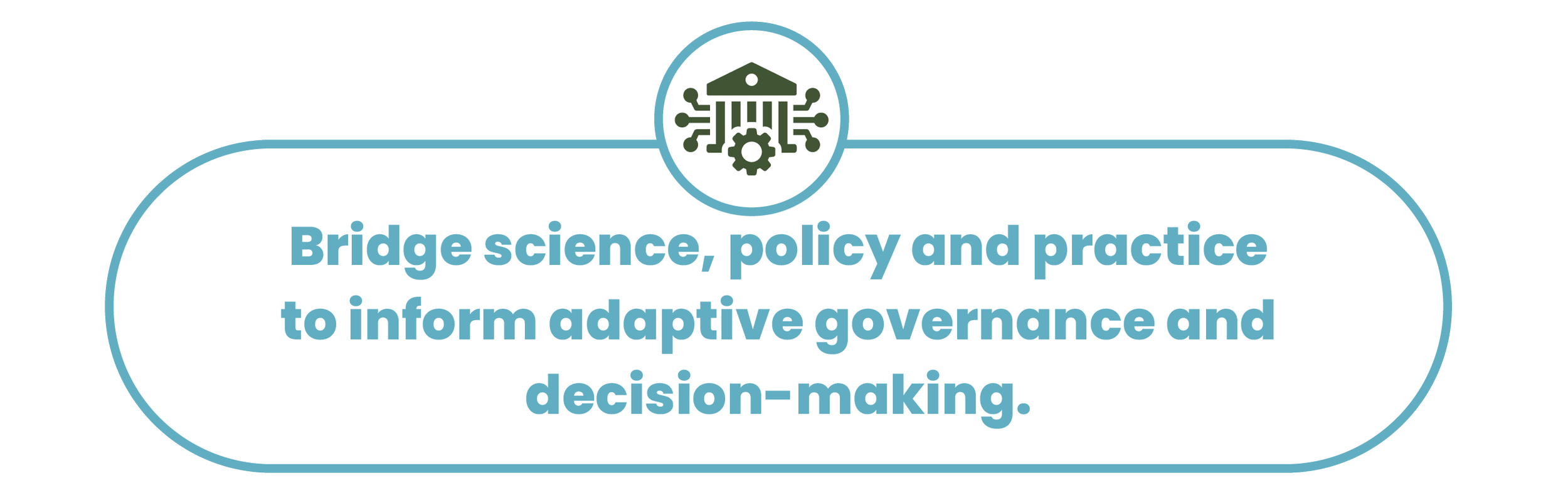 Bridge science, policy and practice to drive adaptive governance and decision-making.